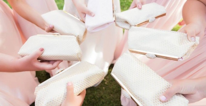 Do you need a bridesmaid gift they’ll use again? Bridesmaid clutches — like these with a chic sparkle clasp — are one idea! We love how the clutches from Ella Winston can be customized to coordinate with your decor. Plus, she offers free embroidery, free customization, and free wrapping, which makes your gift extra special. :) Take a look: