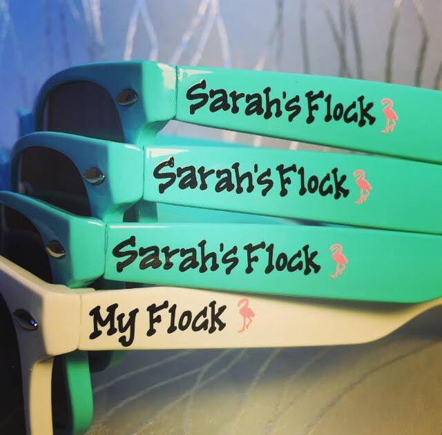 12 – let’s flamingle bachelorette party sunglasses | by the green bridal boutique