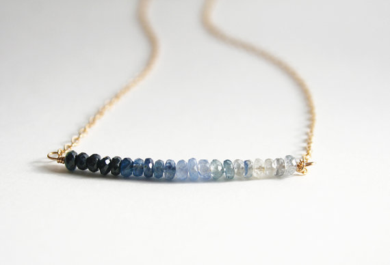 This sapphire blue ombre necklace is ideal for the bride as “Something Blue“. It can be layered for everyday wear after the big day.