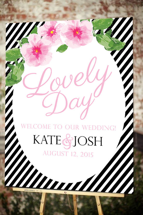 o Prize: Enter to win a Floral Stripes Reception Sign printed on sturdy poster cardstock. Customizable to your wedding colors. By WildHeart Paper.