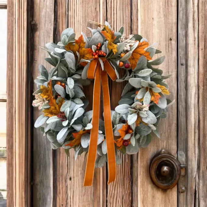 6. Lamb’s Ear Wreath with Velvet Ribbon