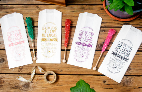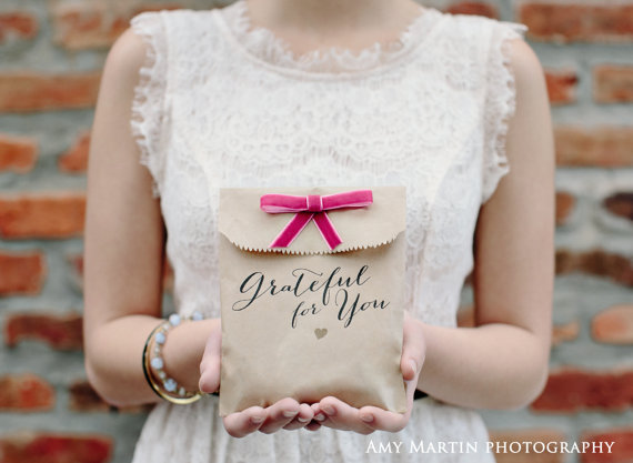 For a more perfect DIY wedding favor, remember that what you put inside favors is just as important as its packaging. Cute, personalized favor bags are more pleasing and irresistible to guests, which means you’ll have less favors left over (and money well spent). And who doesn’t want their guests to enjoy every last favor? When we spotted these favor bags over at Mavora Art & Design, it was a win, win, win: they’re handmade, totally custom, and perfect for filling with candies, popcorn, or other favorite treats. Plus, since Abby over at Mavora is so sweet, she’s giving away a set of 100 favor bags to one lucky Emmaline Bride reader. This giveaway runs for one full week and there are plenty of ways to enter. And, if you don’t want to wait, you can go ahead and score an awesome twenty-percent-off deal exclusively for Emmaline Bride readers. We’ll get to all of that in a minute… first, let’s take a peek at her dynamic collection of wedding favor bags…