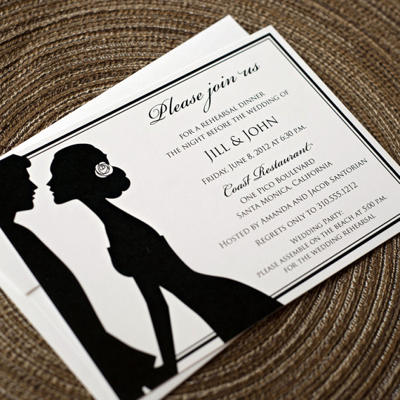Hello, loves! We have an inspirational post on a fun wedding theme to kick up your creativity a notch! Today we’re featuring a favorite classic wedding theme – a silhouette wedding – and showing you how to incorporate handmade wedding ideas into it. Silhouettes (or cameos) are versatile and can be used in nearly any wedding theme. Most commonly is a vintage theme, but we’ve seen rustic, modern, and classic wedding themes with silhouettes used throughout. Today we have a silhouette wedding cake, silhouette lockets for bridesmaid gifts, a guest book alternative, stamps, custom cufflinks, favor tags, and much more. In fact, we’ve rounded up more than twenty-five of the best silhouette wedding finds to inspire you, beginning with a Real Wedding photo that is a must-have on every couple’s list. Enjoy!