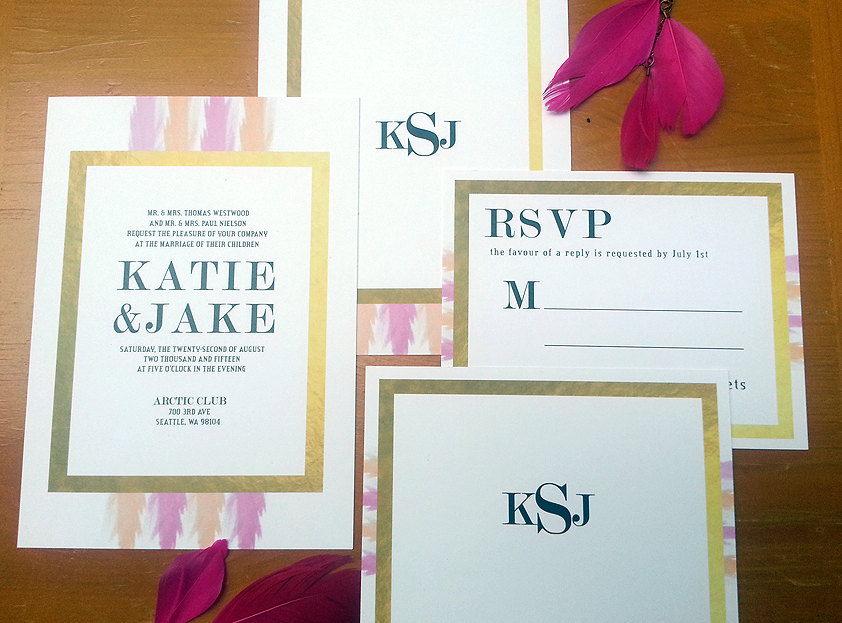 Are you as fascinated with gold foil as me? It seems like everything I buy lately is gold or gold foil or gold metallic. I’m obsessed. Anyway, these gold foil wedding invitations spotted over at Wild Heart Paper are a new favorite, recently released and ready to be given away to one lucky reader! Will it be you?