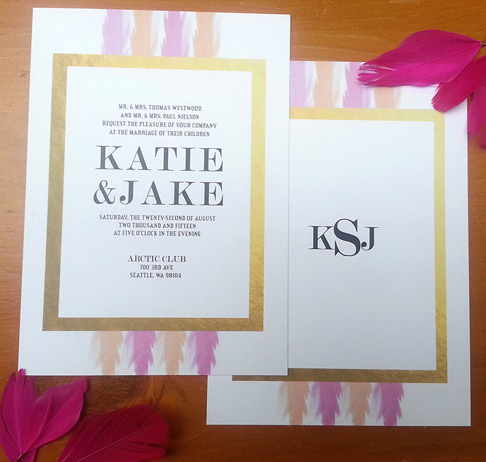 o Prize: Win 25 Modern Gold Foil Wedding Invitations with matching Kraft Envelopes by Wild Heart Paper. Invitations are printed on quality cardstock with front/back design. ***Please note: this is a graphic, not real gold foil.
