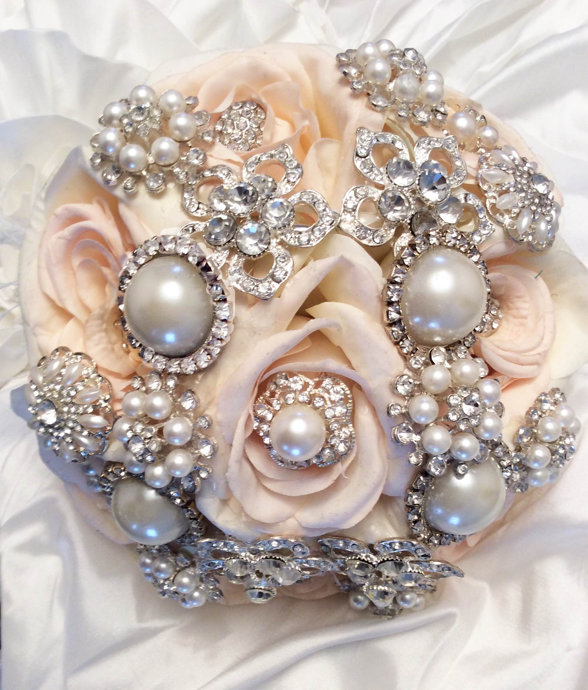Diamonds & Pearl Blush Brooch Bouquet