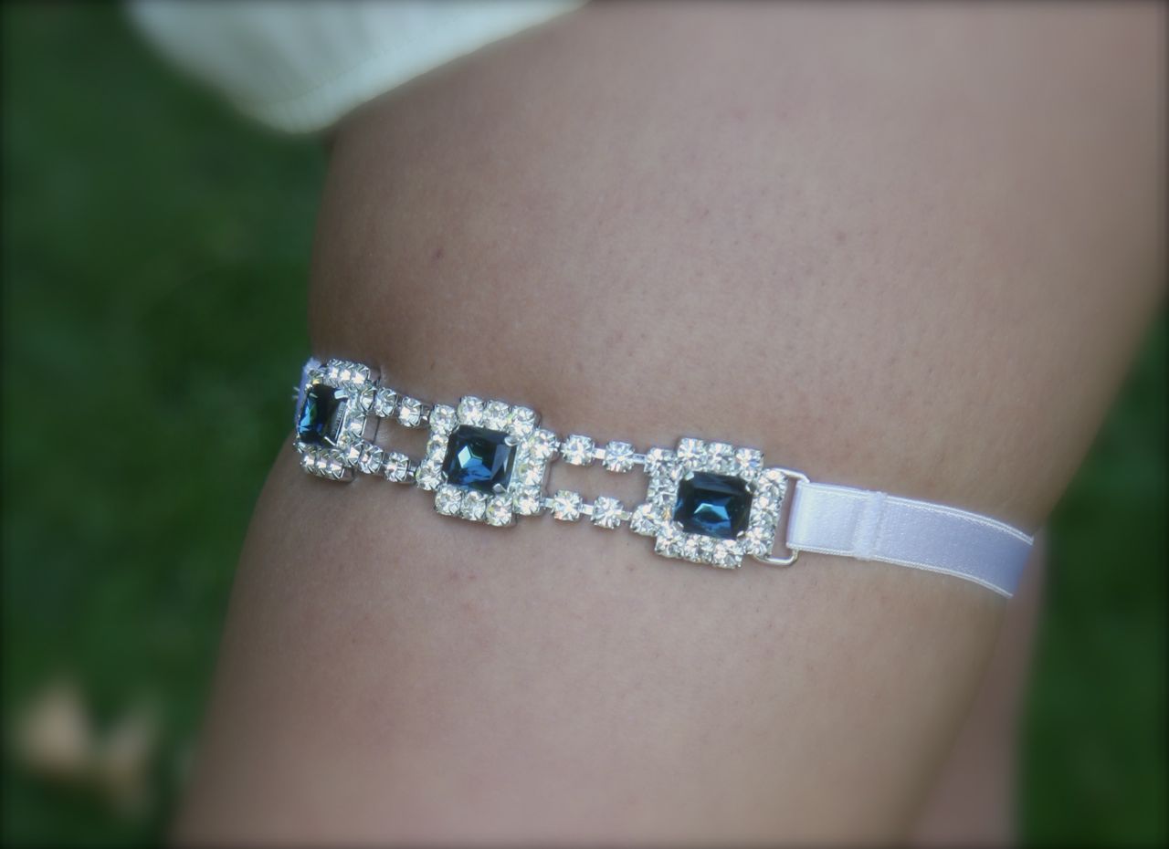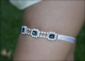 Something Blue Jeweled Garter, 1920’s, Rhinestone garter, narrow band Gemstone Garter, wedding garter, bridal garter, something blue