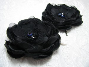 Black bridal headpiece, black fabric flower hair pins, Black wedding accessories, bridal hair accessories