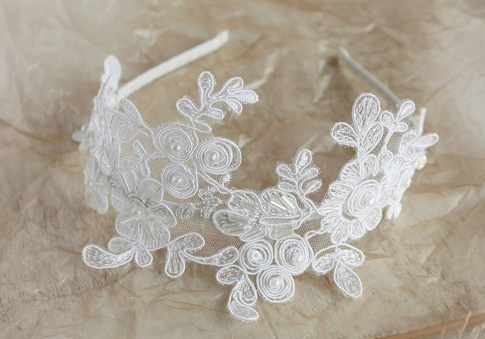 Floral Lace Hair Band, Lace Bridal Headband, Ivory Lace Tiara