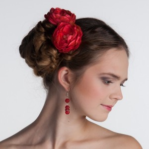 Red wedding hair accessories, red flower hair pins, bridal hair clips, bridesmaid hair accessories, red fabric flowers