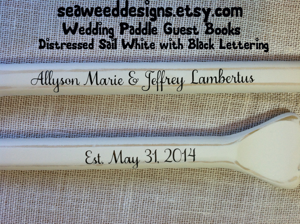 Personalized Painted 52″ Paddles Nautical Wedding Guest Book Pair(2) Bride and Groom Names and Wedding Date Nautical Decor Oars Shown in Distressed Sail White with Black Lettering