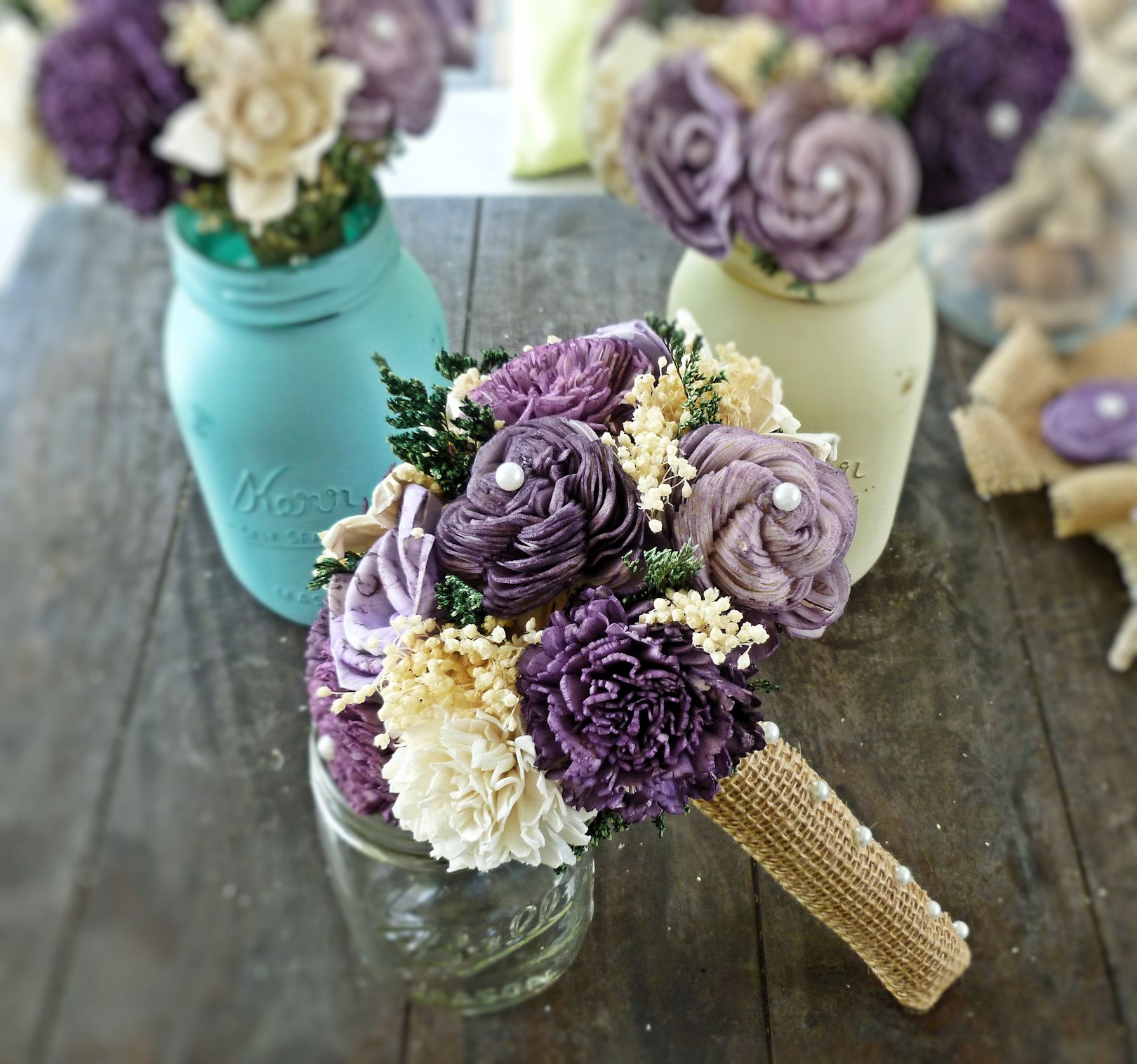 Handmade Wedding Bouquet – Shades of Purple, Bridal Bridesmaid Bouquet, Keepsake Bouquet, Sola Wood Bouquet, Rustic Wedding
