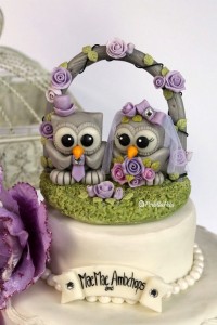 Owl wedding cake topper with floral arch and base, owl wedding, love bird cake topper, bird cake topper, elegant cake topper, custom cake topper, wedding keepsake, animal cake topper, cute cake topper, purple wedding,