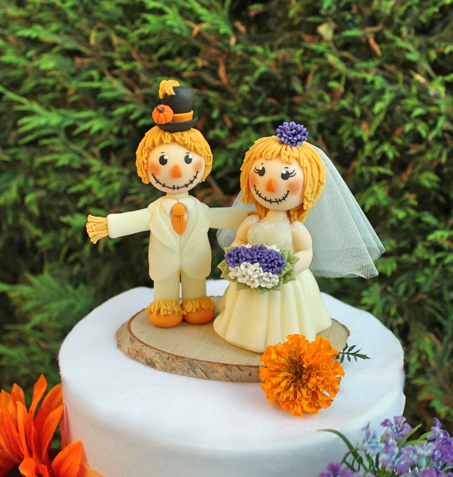 scarecrow cake topper, custom cake topper, wedding cake topper, hand made cake topper, fall cake topper, country wedding, barn wedding, Halloween cake topper