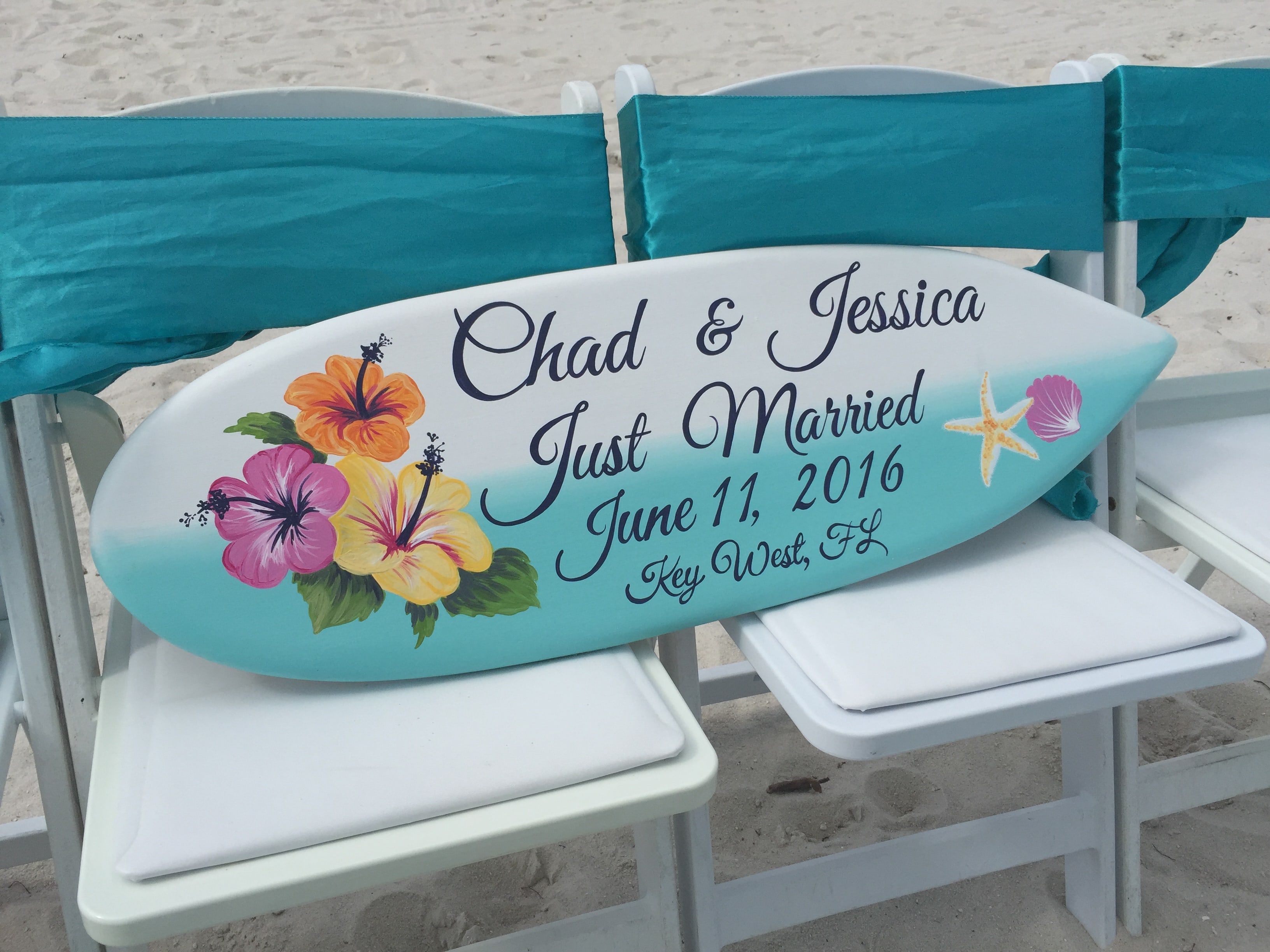 Surfboard Beach Wedding Sign, Hibiscus Flower