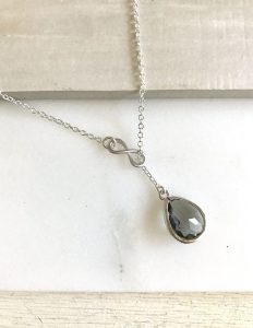 Charcoal Grey Lariat Necklace. Y Necklace. Infinity Necklace. Lariat. Bridesmaid Necklace.