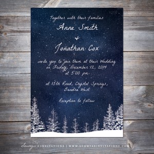 PRINTABLE Winter Wedding Invitation, Navy Blue Winter Wonderland Snow Wedding Invitation, Starry Night Snowfall Wedding Invite by Soumya\’s Invitations