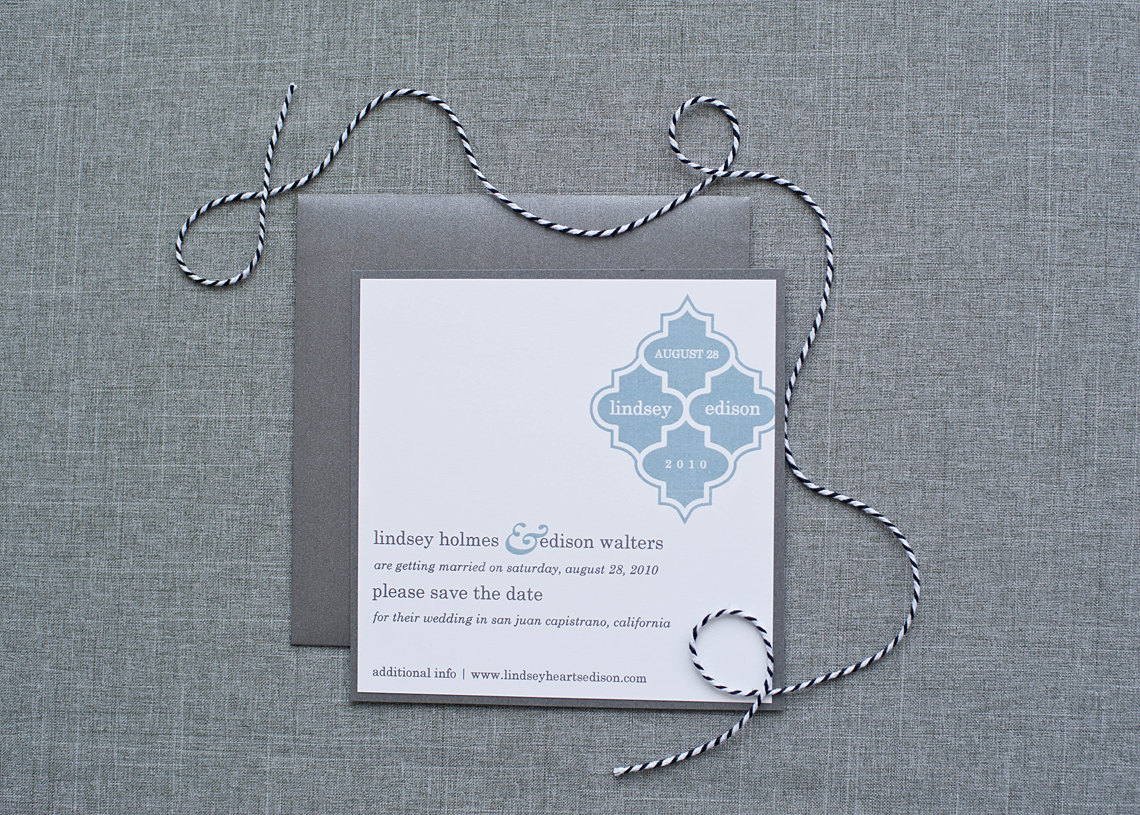 Geometric Tile Wedding Save the Date Card – Grey and Blue – Custom Colors Available – Lindsey and Edison