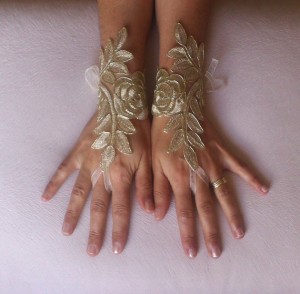 Gold Wedding gloves free ship bridal gloves fingerless lace gloves french lace burlesque gloves gauntlets guantes