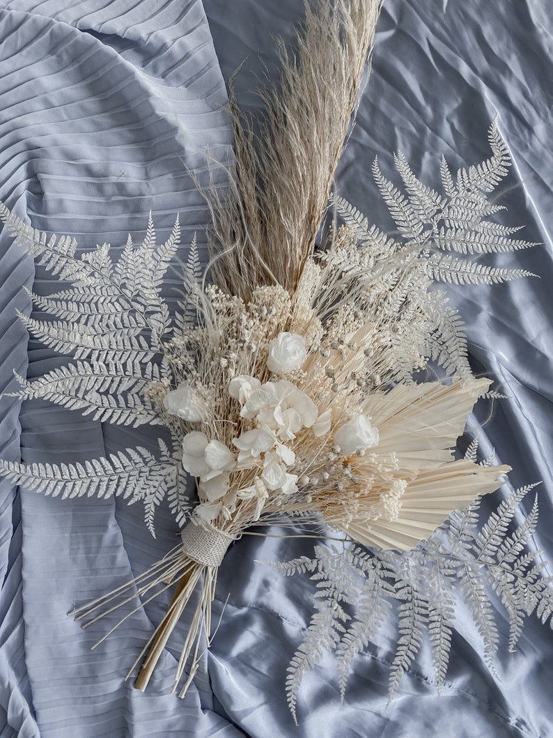 If you love a botanical look for your wedding, skip the fresh flower bouquet and get a pampas wedding bouquet…