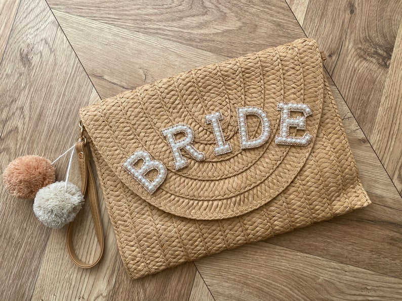 Spotted: a bride straw purse that is perfect for spring and summer weddings! Also makes a beautiful honeymoon gift for…