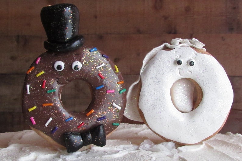 These are the ultimate donut wedding cake toppers! We spotted them at SamsSweetArt. by sam’s sweet art Donut Wedding Cake…