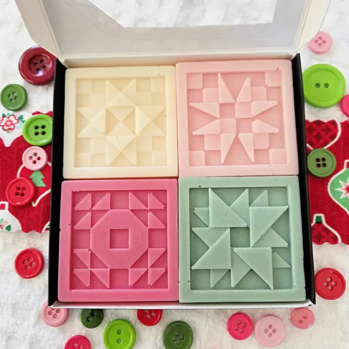 A custom quilt block made of soaps is one of the most unique gifts you can get. This stylish design by SoapEscape is one they will treasure.