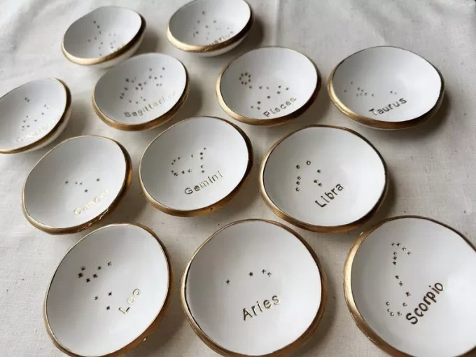 And last but not least, a celestial zodiac sign dish handmade by ThePaintedPress.