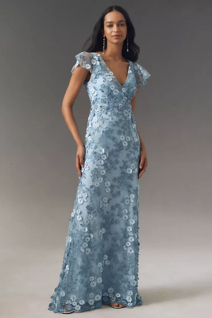 GORGEOUS! Love the ruffle sleeves. Your mom can be your “Something Blue”! By Mac Duggal.