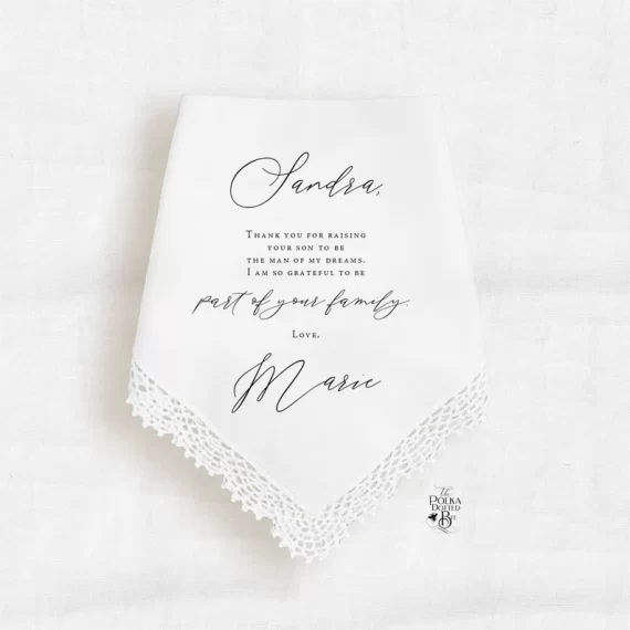 - Custom Handkerchief: Embroidered with a sweet message or your wedding date. Perfect for happy tears.