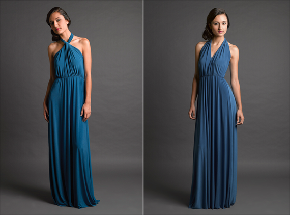 When picking the right bridesmaid dresses, comfort is key — and it ties into a few different facets. First, be mindful of season. If your wedding is in the summer, don’t pick a fabric that’s too heavy; likewise, in the winter, don’t pick something really short and lightweight (or they’ll freeze their you-know-whats-off). Second, when picking the right bridesmaid dresses, find a fabric that’s soft to the touch — and preferably one that doesn’t make too much noise when she’s walking around (hello, there, taffeta, you’ve snuck up on us again!) Third, don’t pick something too clingy or risque. That also means no super-low-cut necklines or Angelina Jolie-esque leg slits. One type of dress that works extremely well for all is a convertible bridesmaid dress, which is a dress that can be worn multiple ways. For instance, the Simone can be worn as a deep v-neck or a cross-front halter. 2 dresses in 1!