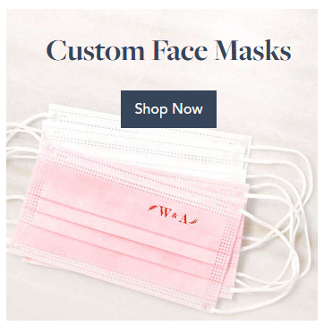 You can buy face masks for guests in bulk here (disposable) or reusable masks in bulk here. To add a light-hearted look and feel, you can create custom masks like these that are surprisingly fun.