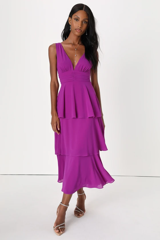 13. Lilac Off The Shoulder Midi Tiered Dress, $89