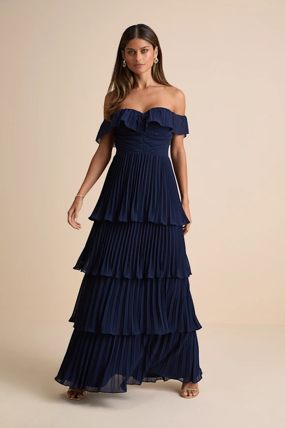 9. Pleated Off the Shoulder Maxi