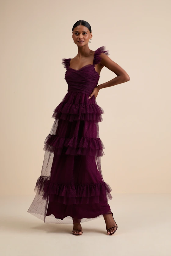 6. Plum Tiered Swiss Dot Maxi