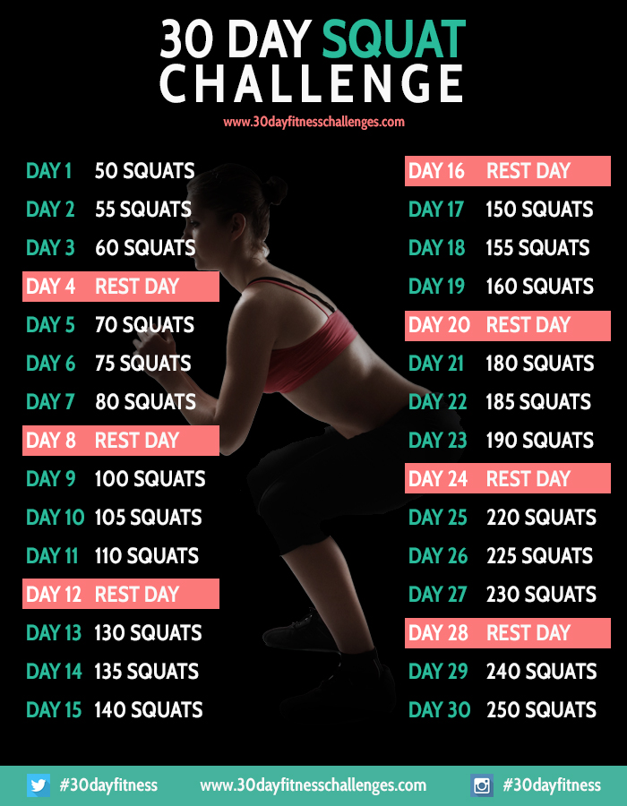 - 30 Day Squat Challenge (via http://30dayfitnesschallenges.com)