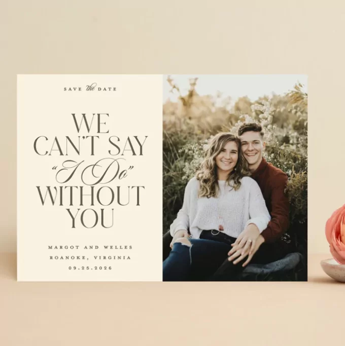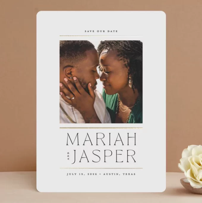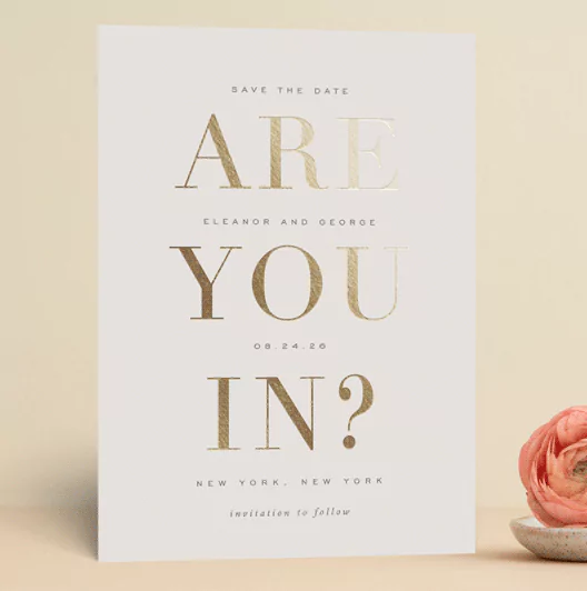 A save the date is a great way to share the news with your guests. They’re also the easiest way to give advance notice to your loved ones to prepare for things like travel, lodging, childcare, time off from work, etc.