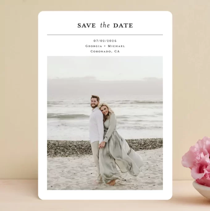 When it comes to your save the date design, the sky’s the limit! You can include unique motifs, photos, and even fun messages to make it your own. Here are some suggestions.
