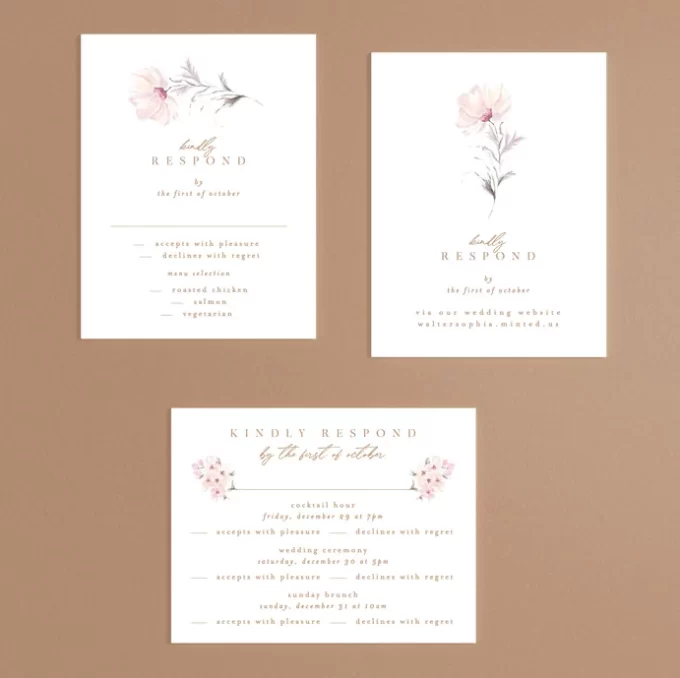 If you have additional items you’d like guests to know about your wedding, add enclosure cards like these. You can share details about the dress code, wedding website, and lodging accommodations.