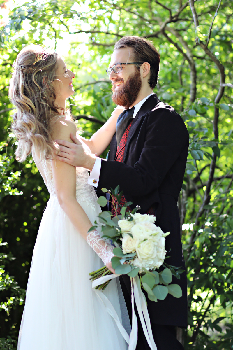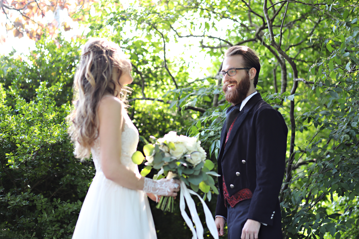 The talented Melissa Prosser captured this wedding beautifully from start to finish. She tells us, “Erin & Tim hosted a truly unique wedding day at the Chattahoochee Nature Center for a springtime wedding. The couple encouraged their guests to come dressed in their favorite costume (be that lady, lord, or even Maleficent!) and had fairytale nods all over the day. They chose to do a first look which allowed them some time to capture some stunning images together around the property. The centerpieces even had some of our favorite Harry Potter houses such as Slytherin! A true favorite moment was when the couple entered the reception, they had a sword fight! Of course the couple won and were able to enter their reception as the Lord and Lady of the hour.”