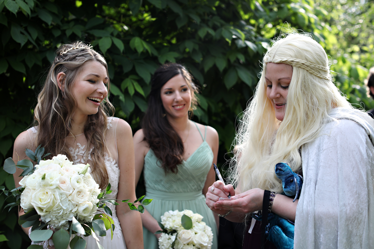 Hi, loves! Emma here. When you’re planning your wedding, picking a theme is essential. Without a theme, planning can feel daunting and not much fun at all. But with the right theme — one that really inspires you — everything will fall into place and planning will suddenly be a lot more fun. It seems Erin and Tim knew exactly what they were looking for when they chose a fairytale wedding theme. They wanted something totally creative and whimsical; they love fictional characters (like Harry Potter), medieval elements (like King Arthur / gothic details), and romantic scenery (gardens and forests), so fairytale weddings piqued their interest immediately. It was an excellent fit because their medieval themed fairytale wedding is the coolest and most inspiring we’ve ever seen.