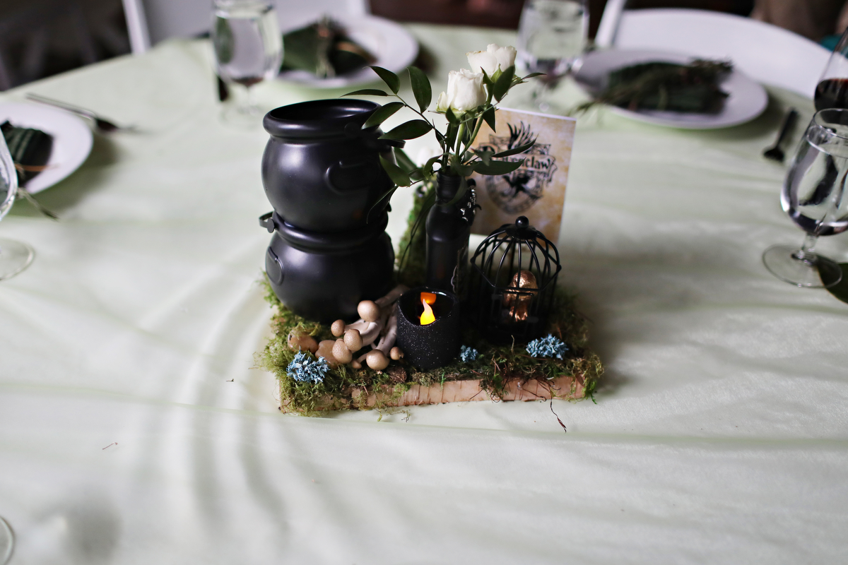 For a creative twist, they used Harry Potter houses instead of table numbers. What a fun idea!