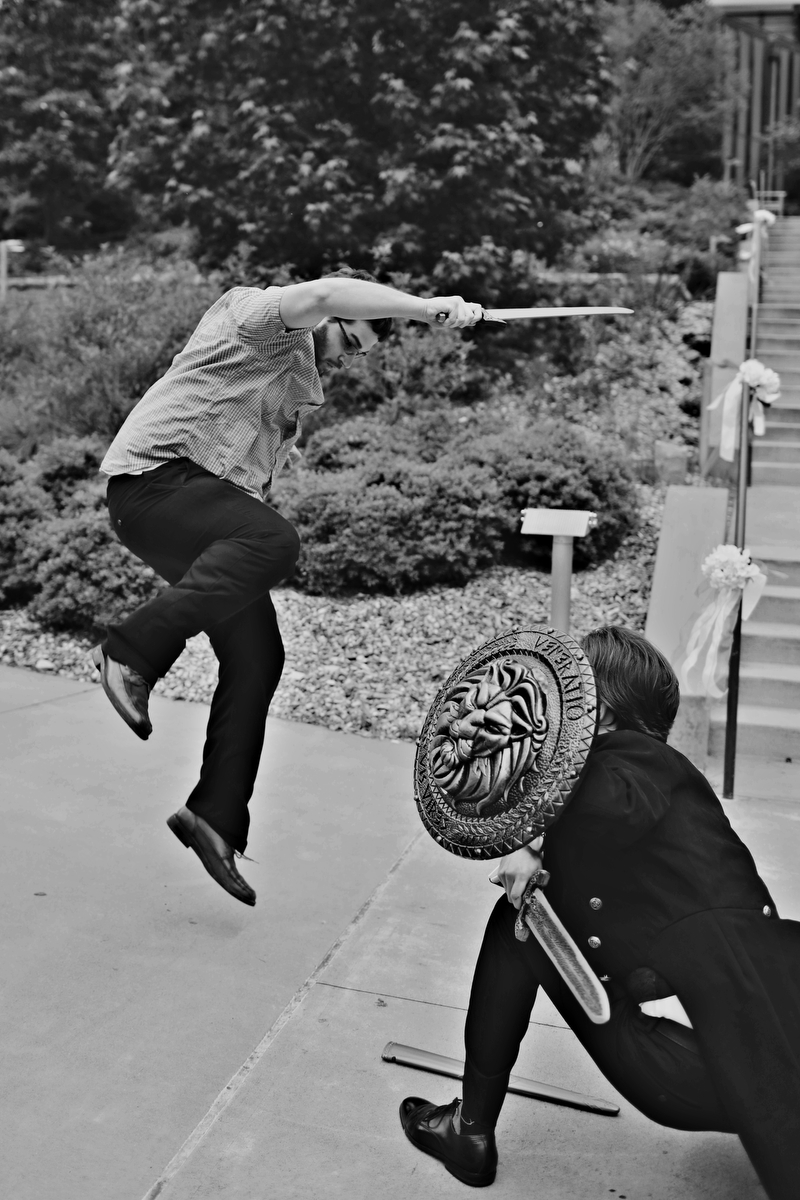 Erin and Tim even had a sword fight before the ceremony, reminiscent of knights dueling in medieval armor during ancient times.