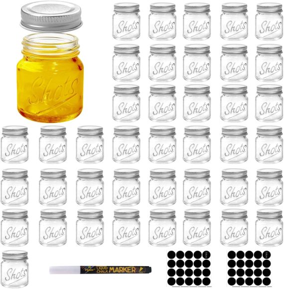 For a fun twist on the mason jar drinking glasses craze, but in a smaller shape, opt for shot glasses.
