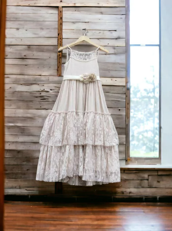 “I’m planning a rustic wedding in May and I’m looking at flower girl dresses for my two nieces. Do you have any suggestions? I saw some rustic lace dresses on Pinterest but can’t find them anywhere. Thank you!”