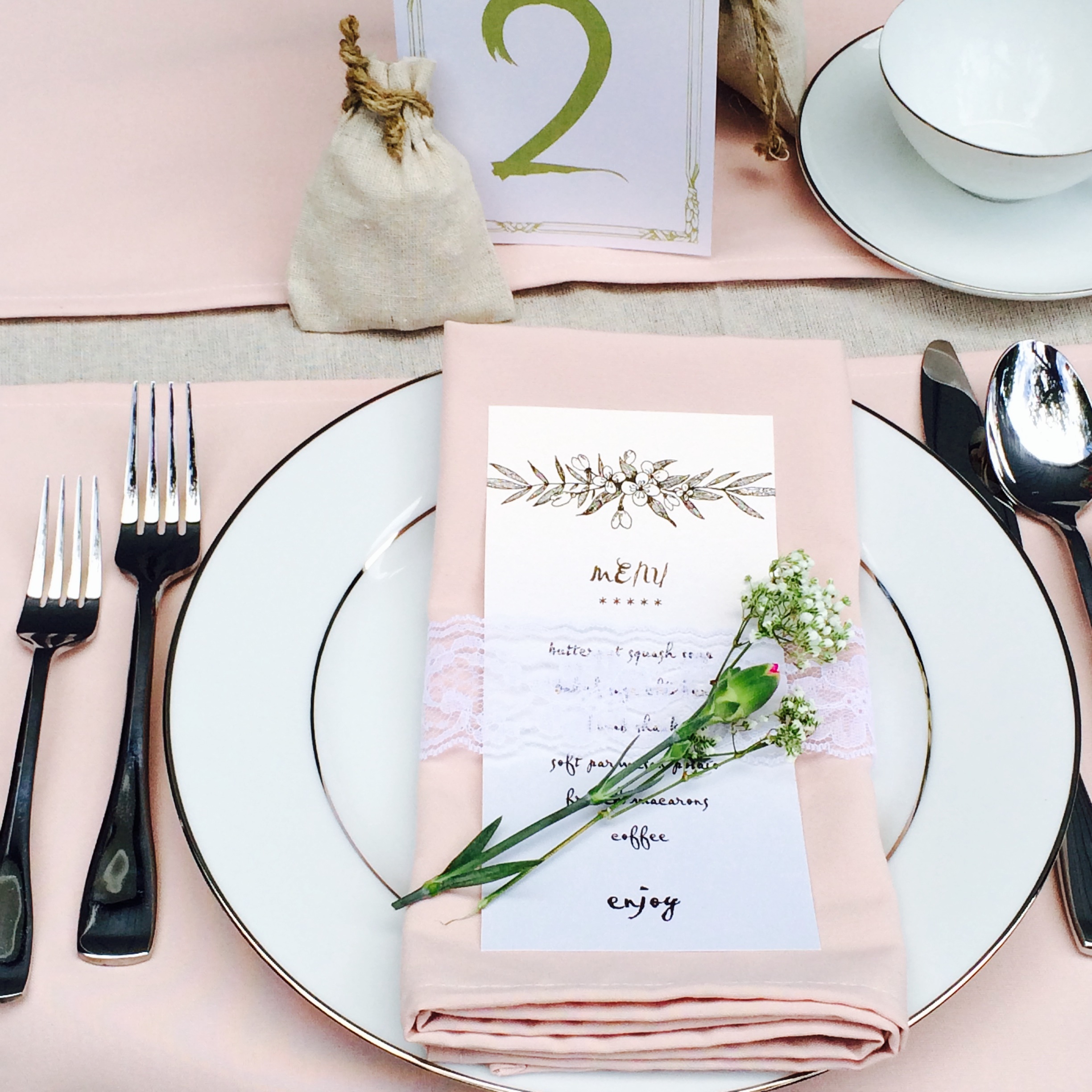 Thank you! That is very encouraging! We’ll be carrying Uptown Table Linens in Gray, Black, White and Blush. We designed all the aspects of the linens, including the Blush color itself. From creating the real Blush shade to the actual thread count. This way, we can offer soft and durable table runners, placemats and napkins that capture the true Blush hue that every bride is looking for. – John and Kristina, Burlap and Silk