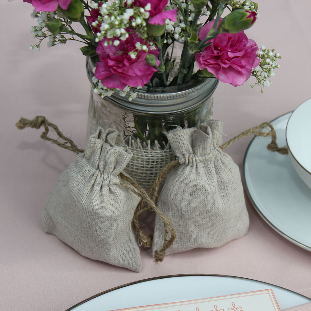 Drawstring bags will give your wedding favors a personal, homespun feel.