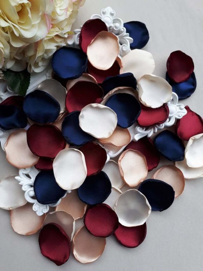 26. Line your ceremony aisle with these burgundy, navy, and pink rose petals