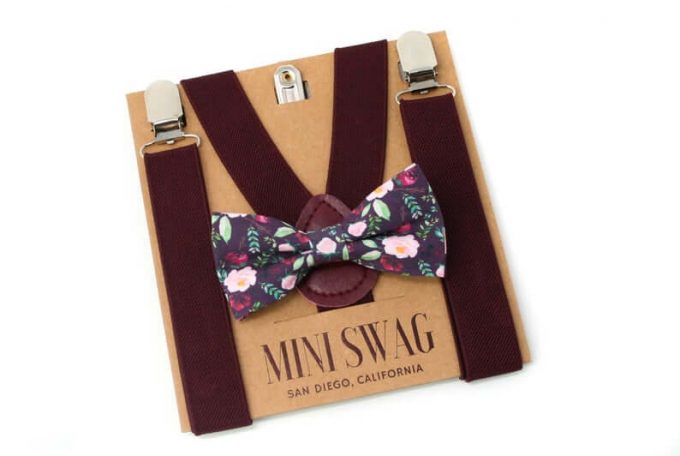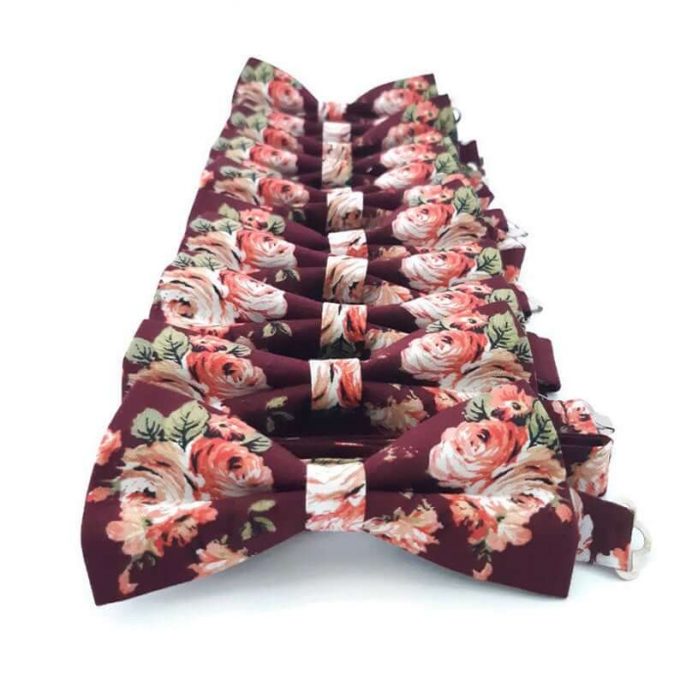 23. Dress groomsmen in these floral burgundy wedding bow ties