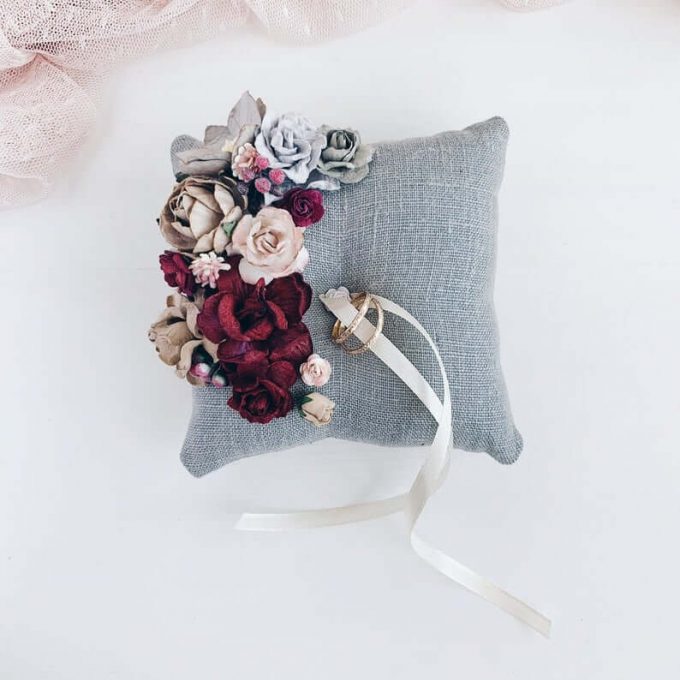 21. Have your ring bearer carry this burgundy wedding ring pillow